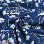 日本製 ポリエステル 150Dソフト梨地 線画ラフフラワープリント アイボリー×紺 J[オーダーカット生地 10cm単位]